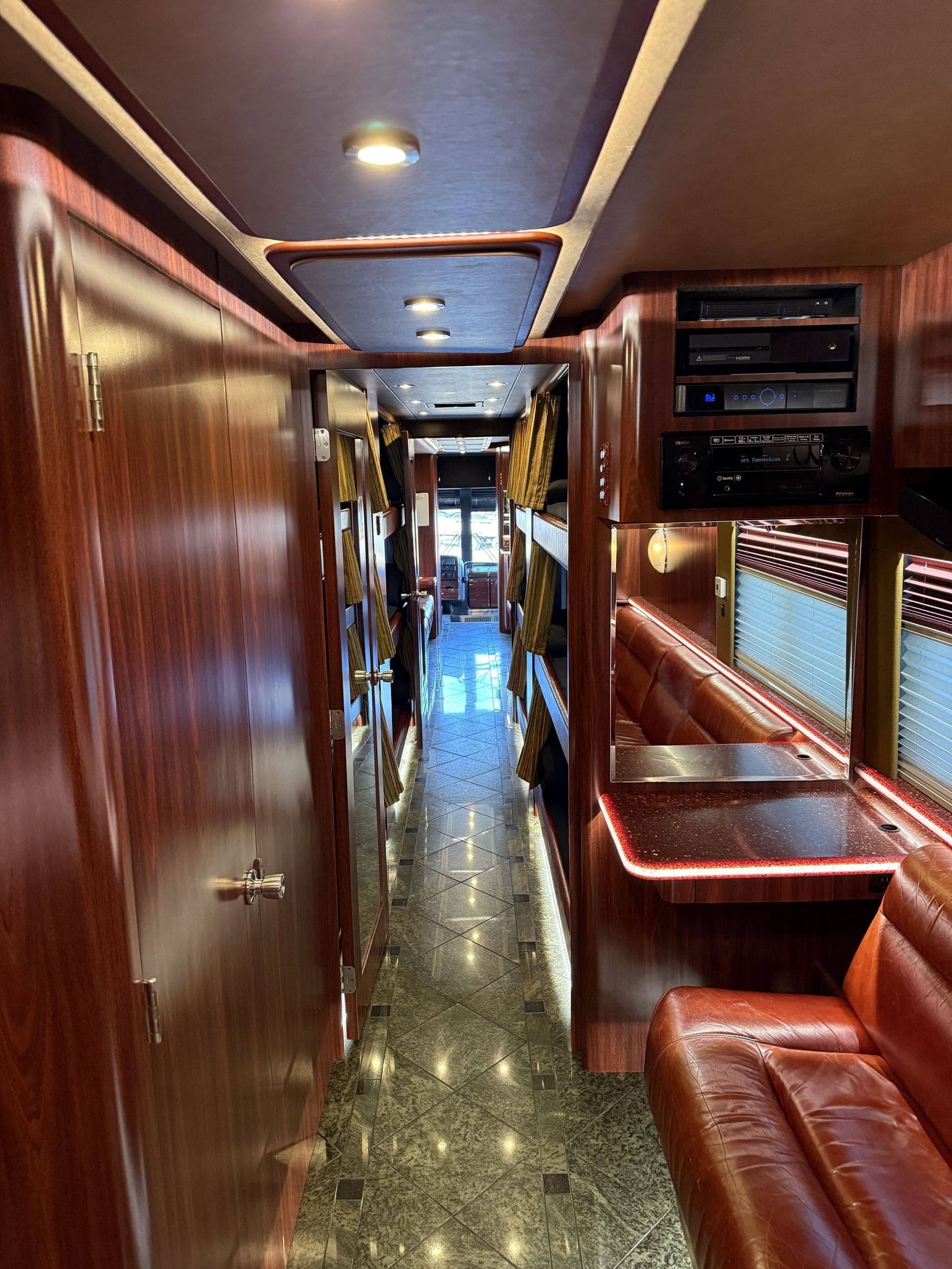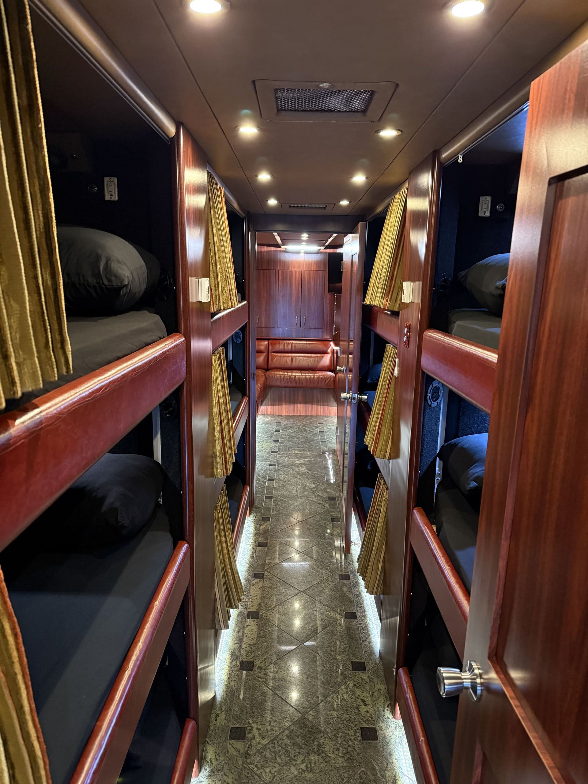 - Sleeps 6–12 passengers comfortably with custom bunks and lounge seating