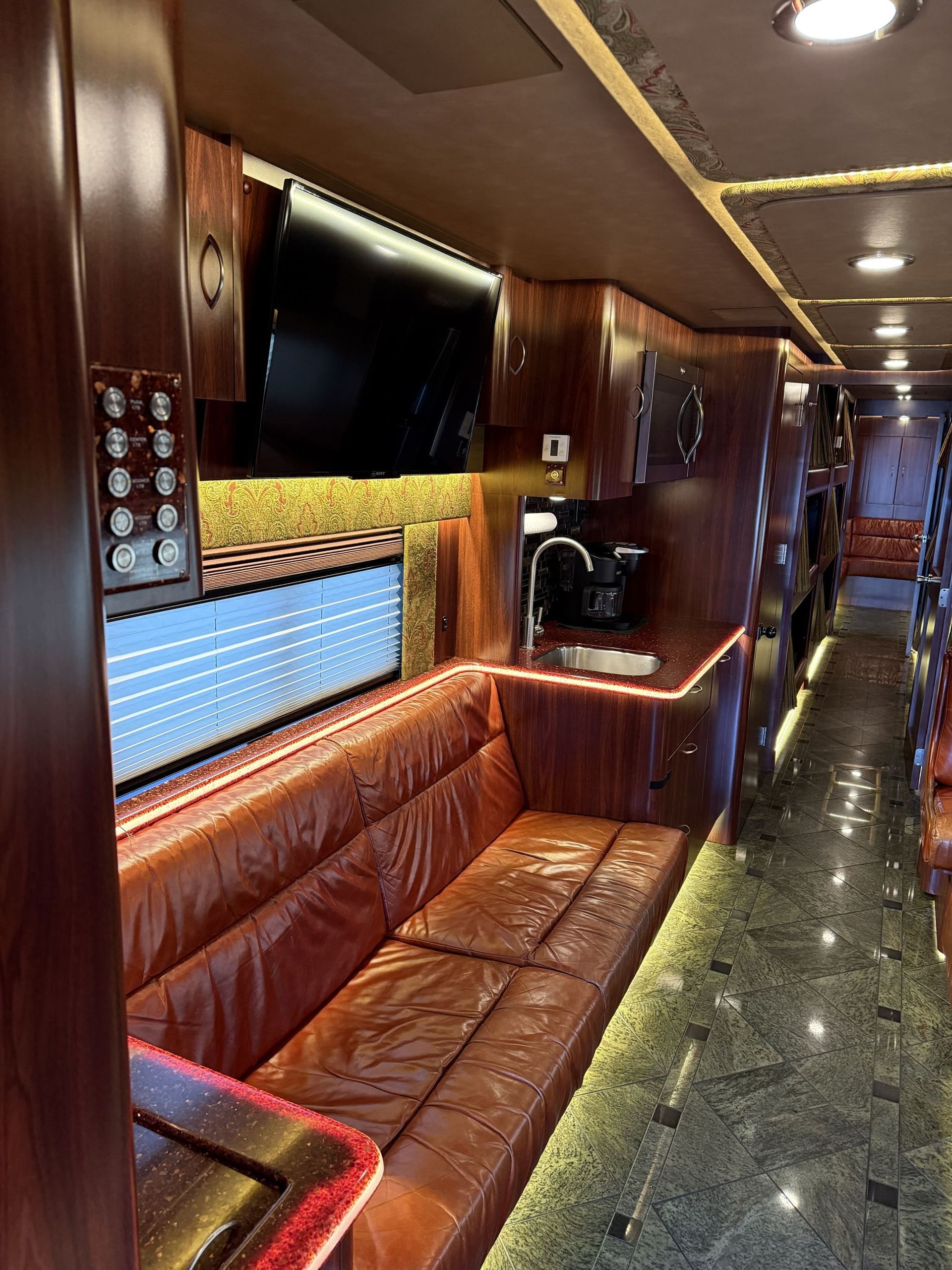 This sleek luxury coach is perfect for your next campaign, appearance tour, or VIP travel. Get a quote, check availability, or customize your rental today.