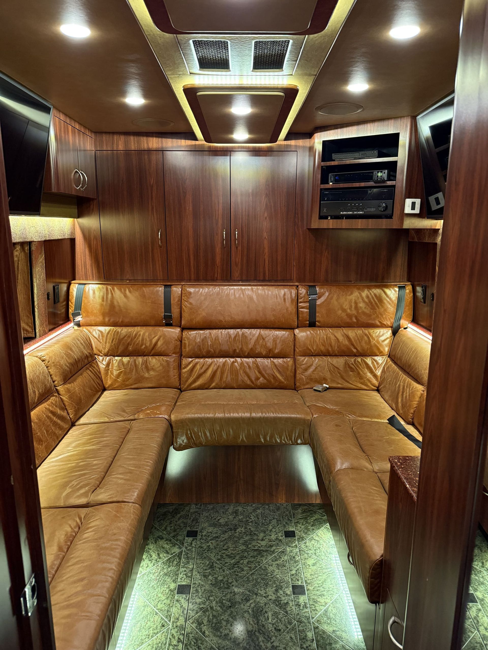 - Full media system with flat-screen TV, Bluetooth stereo, USB, and DVD