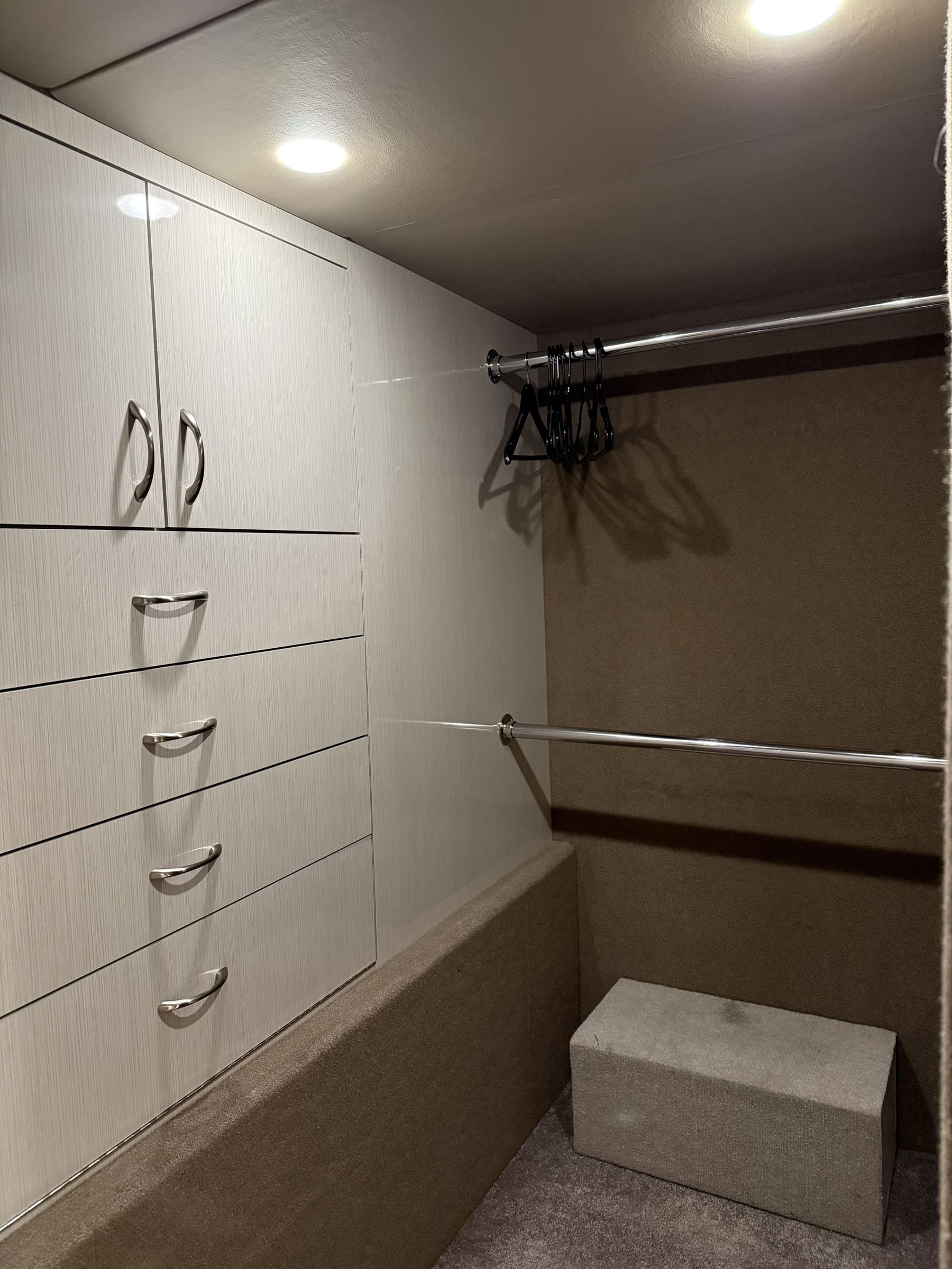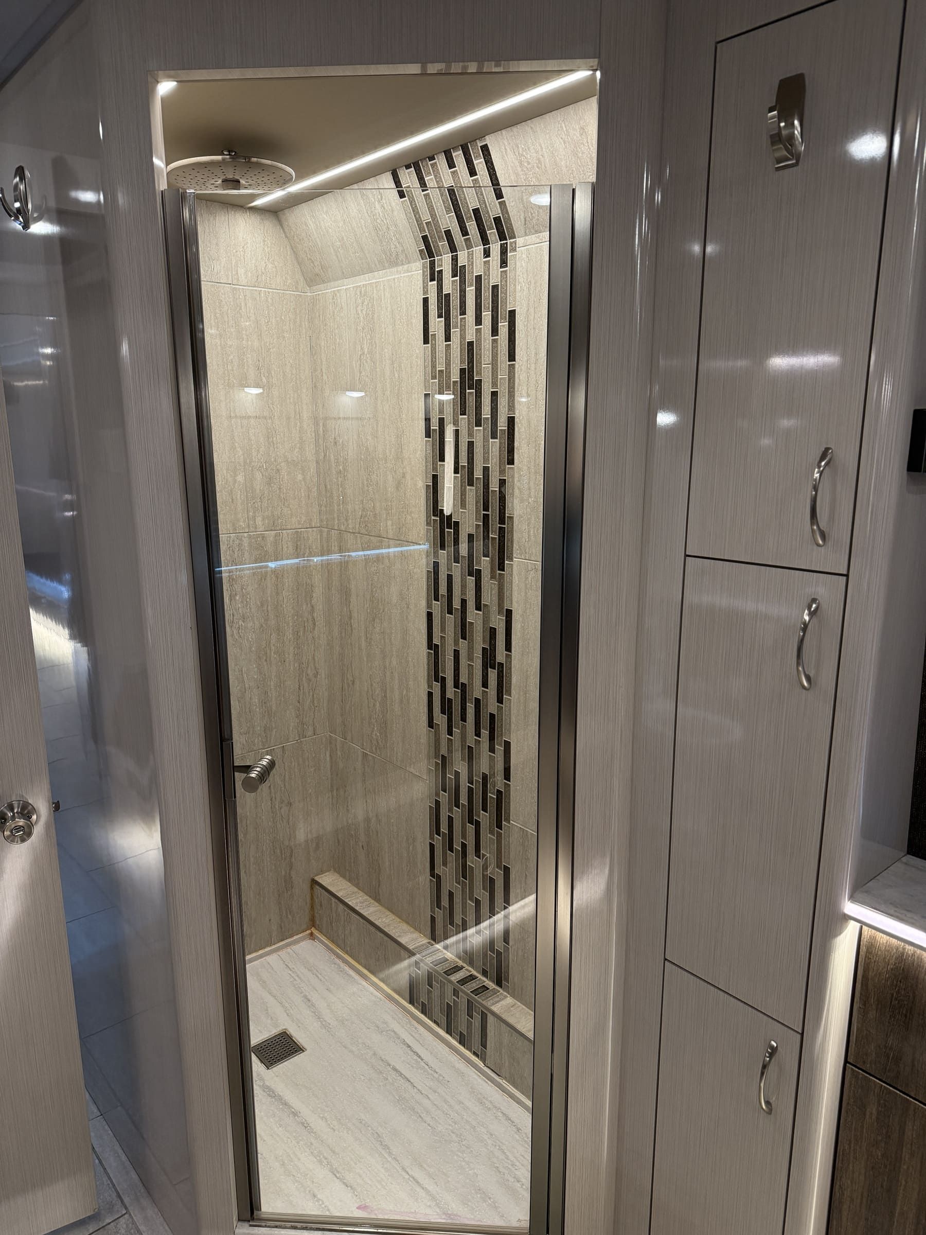 - Sleeps 6–8 passengers with a private suite and a rear full bath